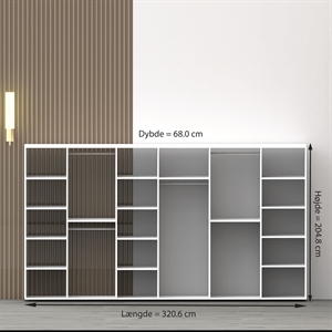 Så kan du kalde det for et XL-garderobeskab. Dette garderobeskab har ialt 4 bøjlestænger til skjorter og jakkesæt samt en ekstra stang til de lange kjoler.